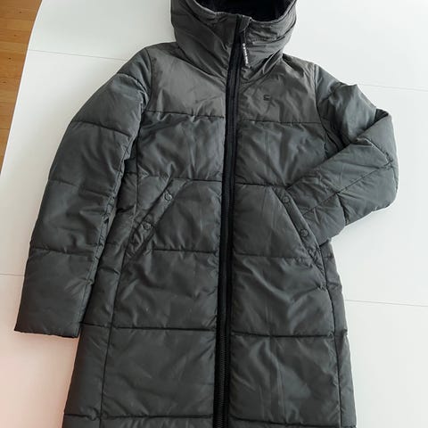 Quiltet dame vinterjakke i sort fra G Star Raw. Der er en god justerbar hætte på. Str M, men lidt lille i størrelsen. Fejler ingenting. Fra røg og dyrefrit hjem.