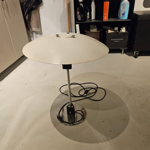 Louis Poulsen PH bordlampe designet af Poul Henningsen. Lampen har et klassisk design med karakteristiske skærme, der sikrer blændfri belysning.
