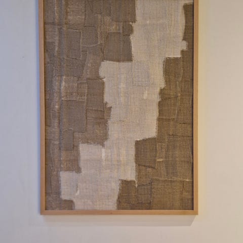 Hænger på en kobber stang, men kan ogaå indrammes.