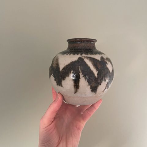 Lækker vase lavet af HB for bornholmske Michael Andersen. Spiller smukt på kontrasterne, det grove ler og den glatte glasur, det brune let og den fine, tykke, næsten flødeskumsagtige, glasur. Rektanglerne og det runde. Har en følelse af at meget farverige blomster ville passe perfekt. Kunne fx være påskeliljerne til foråret, indtil da pynter den smukt alene, eller bare med nogle grene eller i hyggeligt selskab med andet ler. #keramik #glasur #michaelandersen #kontrast #brutal #blomster #vase #rå #fløde #pangpåfarverne #danskdesign #chamotte #håndlavet #bornholm #stentøj