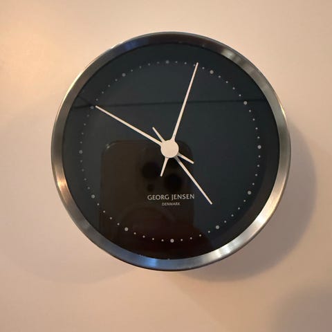 Klassisk og flot vægur sælges. Stål med hvid baggrund. Ø 22. Står som nyt.