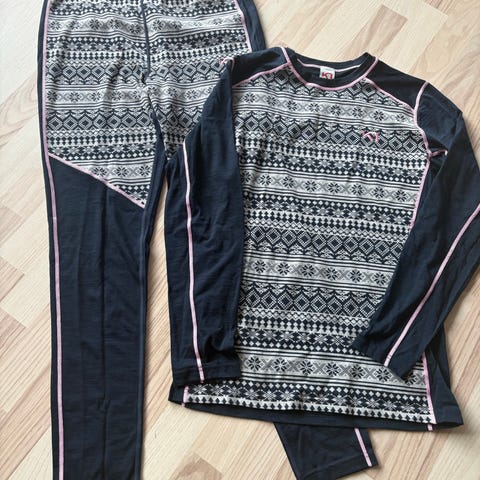Turkis skiundertøj-sæt i størrelse M måske svarende til størrelse 36-38. Halvlange ben til skisokker. Brugt, med et lille hul i det ene ærme, se foto.