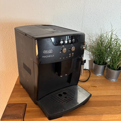 Automatisk kaffemaskine med indbygget kværn, der kan lave espresso og capuchino fra kaffebønner og fra malet kaffe