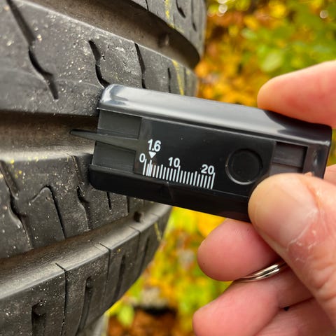 Gode brugte dæk, kun skiftet da fru Hansen ville have all whether på. Ca 6 mm gummi tilbage