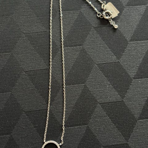 Fin halskæde bestående af elegant, tynd kæde med mini Disney-vedhæng for enden i sterling sølv + stort vedhæng med motiv af prinsesse søstrene Anna og Elsa på forsiden, og mottoet "The Journey Connects Us" på bagsiden.