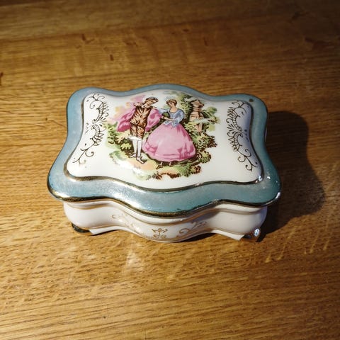 Multifunktionelt: Ovalt + Hjerteformet Lak skrin, pilleæske, lakæske, lågskrin, smykkeskrin fra ca. begyndelsen af 80'erne