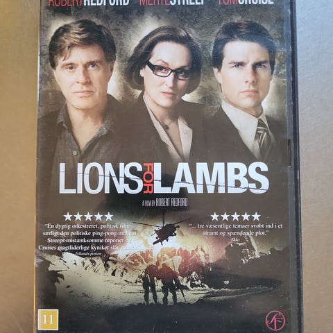 Lions for Lambs, instruktør Robert Redford, DVD, drama, Robert Redford er både skuespiller og instruktør i dette fantastiske drama. Yderliger medvirker Meryl Streep og Tom Cruise.