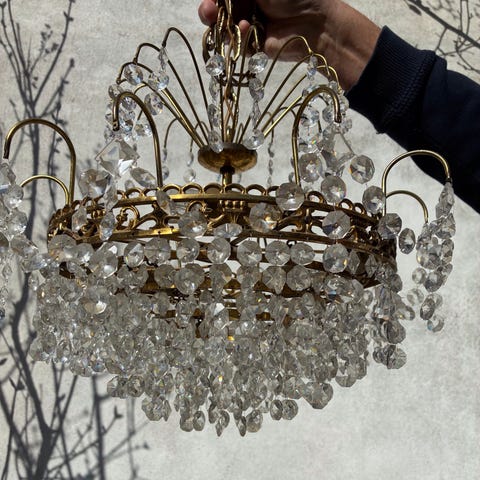 Arme: 5 stk. med krystalskåle og hængende prismer ( 1 revnet - ses ikke)