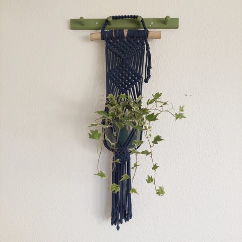 IKEA dekoration ophæng lavet af træ og bomuldssnor. Består af snoede snore med træperler og geometriske træelementer. Naturlig træfarve og materiale. Velegnet til indendørs til planteophæng.