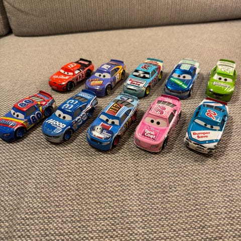 8 Cars Disney metal biler i vinter udgave (hvide i bunden). De er brugt men passet godt på og i fin stand og køre som de skal.