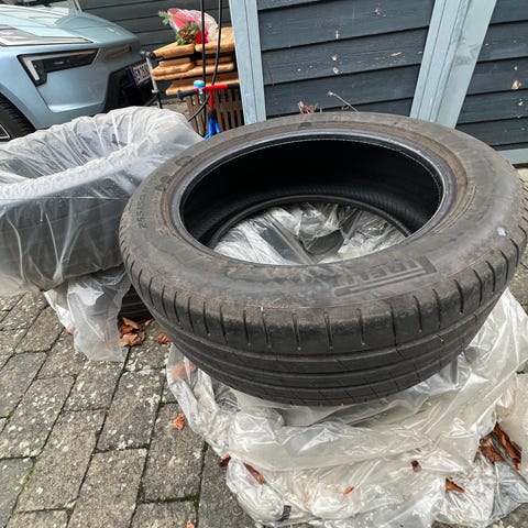 Ét dæk (højre bag) har kun kørt få km og er næsten som nyt - produceret uge 23, 2025.