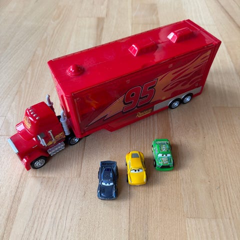 8 Cars Disney metal biler, de er brugt men passet på så i fin stand. De køre alle som de skal. Garagen/affyringsrampen medfølger også. Man sætter de 8 biler ind, trækker affyringensknapperne tilbage og trykker på knapperne, så skyder bilerne afsted i et kapløb.