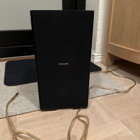 Philips højttaler med sort stoffront. Designet til lydafspilning i hjemmet eller kontormiljøer.
