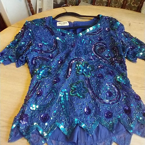 Den smukke tunika er med håndsyede perler-brpderidetaljer ved hals, skulder og manchetter. Elegant og tidløs model med løs pasform- kan styles både casual og festlig