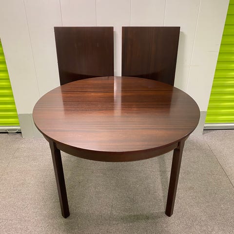 Lækkert rundt spisebord i palisander med 2 tillægsplader, hvoraf 1 er med sarg.