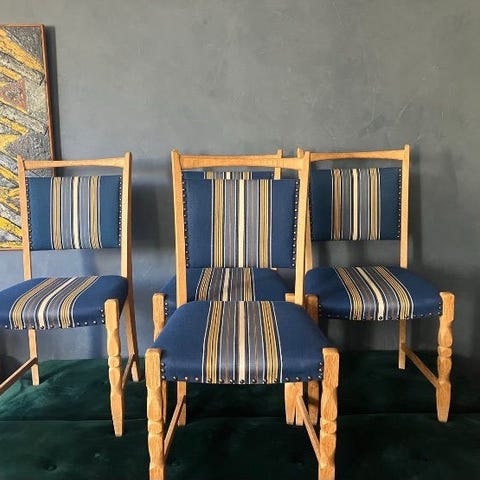 Henning Kjærnulf. 6 lækker armstole af massivt egetræ, sæde betrukket med skai sort. Fremstillet hos EG Møbler. 1960/70’erne. H 76/44 B. 50 D. 50 cm. Fremstår i super stand. Pris er pr stol. Evt kan lev aftales.