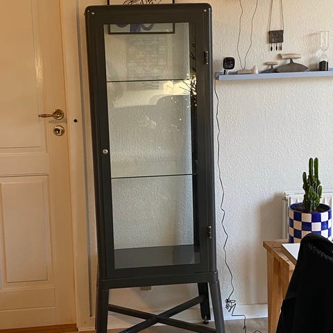 Fint mørkeblåt vitrineskab. Nypris 1300.