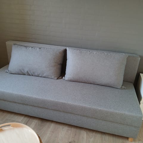 Sovesofa der var været på vores gæsteværelse i 3år. Den har været brugt en 4-5 gange om året så den ser stadig ny ud og dufter ny.
