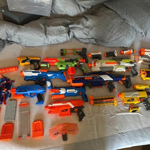 3 fede legetøj guns, heraf 2 x Nerf og 1 x D Dart.