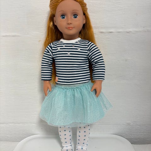 Flot kjole, diadem, sko og strømpebukser til Our Generation.