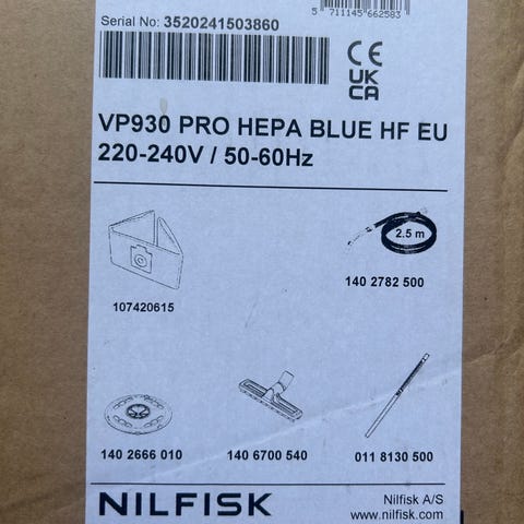 Nilfisk VP930 HEPA blue med lang ledning og tilbehør.