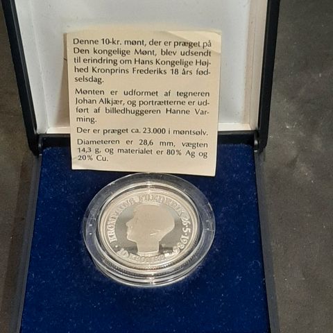 (307) Kronprins Frederik 18 år 10 Kr. JUB.