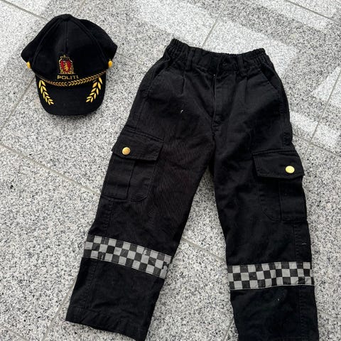 Udklædningstøj: Politivest, kasket og legtøjspistol