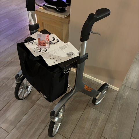 inkl. taske, rygstøtte og krog til pose/taske. Der er brugsspor på siderne, ellers pæn stand og funktion. Købt i Senior24 november 2024, kvittering kan medfølge.