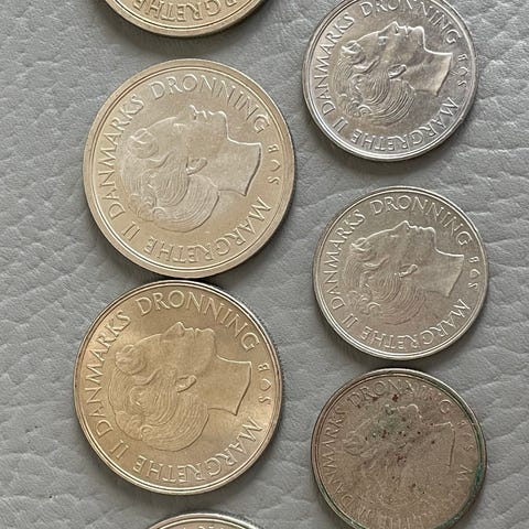 5 kr. 1 kr. 25 øre - 10 øre - 5 øre