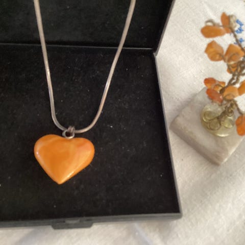Ravhjerte med Sølvkæde & Ravøreringe.,,,