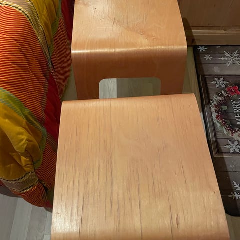 Ikea "Benjamin" skamler designet af Lisa Norinder, senere malet røde, fremstår med patina, pris: 250 kr pr/stk - samlet salg foretrækkes