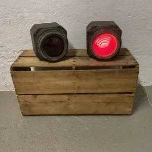 Toglygte/signallygte/slutlygte i jernblik,med petroleumsbrænder.