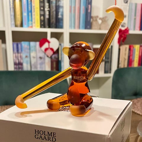Holmegaards 200 års jubilæum har i samarbejde med Kaj Bojesen designet denne smukke glas abe. Fået i firmagave. Original kasse. Kun åbnet ifm billedetagning.