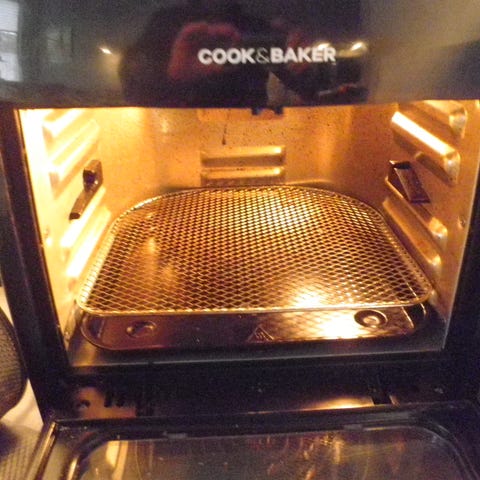 Cook & Baker Airfryer med Rotisserie i sort farve. Airfryeren har en roterende kurv til jævn tilberedning samt en rummelig kapacitet. Materialet er holdbart og nemt at rengøre. Produktet leveres med brugsanvisning og er egnet til tilberedning af forskellige typer mad med luftfritering og rotisserie-funktion.