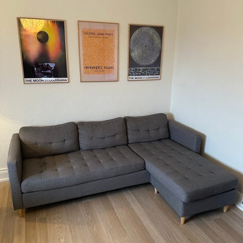 Den er brugt i et år, men passer ikke ind efter flytning. Den er ligeså god som ny, ingen mærker eller misfarvning