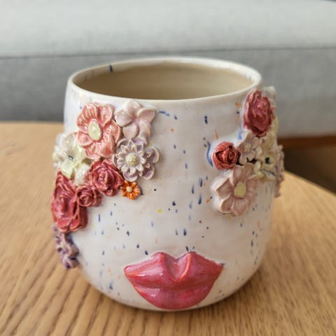 Håndlavet kop i keramik og blå nuancer. Købt i Blåvand.