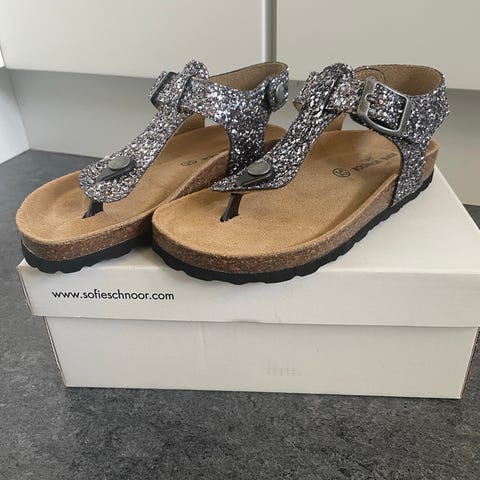 Petit by Sofie Schnoor blå sandaler størrelse 29. Sandalerne er sorte med justerbare stropper og en hvid sål med mønster for bedre greb. Materialet er blødt og egnet til børns fødder. Sandaler/skumsandaler/badesko med velcro lukning tre steder. Kun brugt som sko ud til haven.