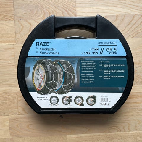 Snekæder som passer til 14”, 15”, 16” og 17”. Se billedet for præcise fælgmål.