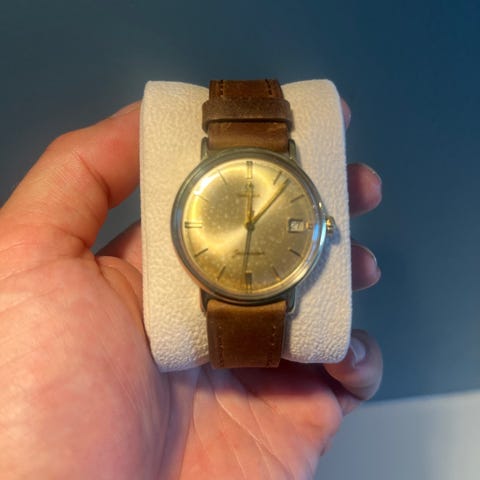 Virkelig sjælden lænke til Omega Seamaster og Geneve modeller, normalt er de slidt op, og erstattet af læderrem, materialet er rustfritstål og lænken har Omega logoet, perfekt til vintage Omega ure.