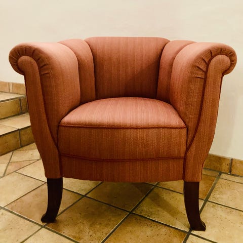 Meget komfortabel lounge-stol med klassisk sædefald.