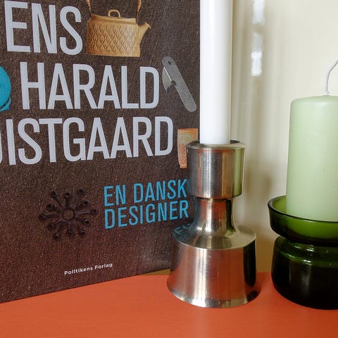 Et par lækre messing lysestager tilskrevet Jens Harald Quistgaard. Passer til standard kronelys. Højde 17,5 cm. God stand.