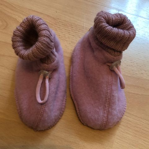 Joha uld futter i blå farve størrelse 60. Med spænde bånd så de kan sidde ordentligt fast på foden. 100% merinould. Er gået lidt op i syningen inde i selve futten (se billede). Har fnuller. Kun vasket i neutral uldvaskemiddel.
