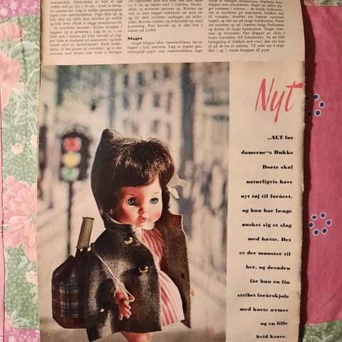 25 × 20, masser af fine illustrationer af dukker syet af stof med masser af fine pynt og detaljermønstre og samtidig også en fin historie om en ske der bliver væk
