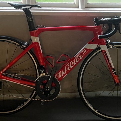 Carbon racer med 10-speed Shimano 105 gear. Har stået stille i årevis, så trænger nok til lidt smøring men cyklen kører fint. Rammen måler 55cm c-t og passer nok bedst til personer på mellem 170-180cm. Monteret med Look pedaler, men kan evt. skiftes til anden type. Cyklen kan evt. leveres (øst for Storebælt) imod depositum.