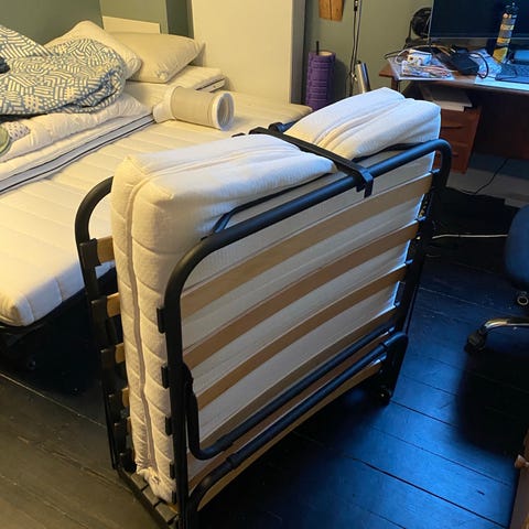 Foldbar gæsteseng fra JYSK i modellen ILSKOV samt hvidt lagen. Købt for få måneder siden, kun brugt enkelte gange og fremstår som ny.