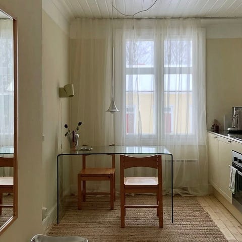 Alle borde er meget velholdte, uden skår eller revner i glasset, og stellet fremstår flot og stabilt.