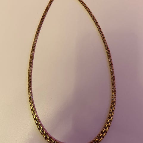 Fin og god stand. Længde ca. 43 cm. Bred smal stykke ca 5-6 mm, tykke stykke ca. 9-10 mm. Vejer ca. 21 g. Stemplet H. Gr. 585.