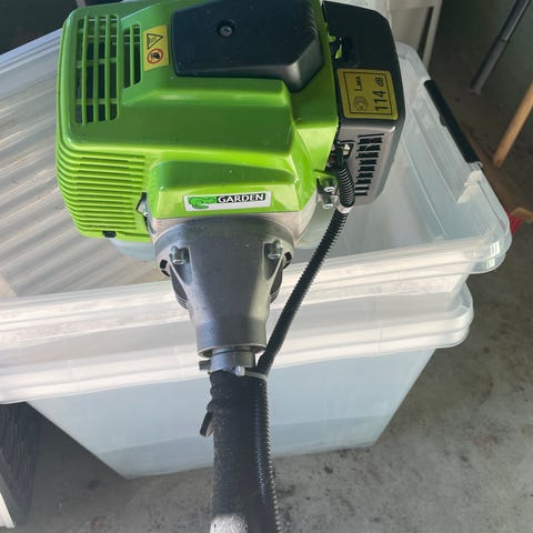 Echo BC-2410 buskrydder med benzinmotor. Udstyret med håndtag og beskyttelsesskærm. Designet til brug i have- og landskabspleje til trimning af græs og ukrudt.