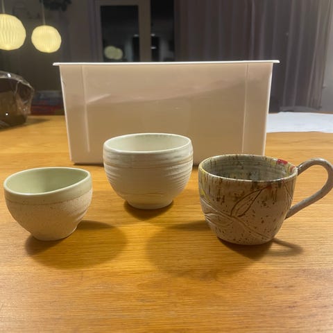 Keramisk kaffekop med hank, hvid med blå og sort dekoration. Velegnet til servering af varme drikke.Royal Copenhagen 11 små årskrus