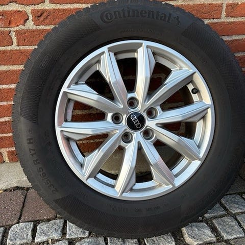 Vinterhjul med kvalitet dæk fra Dunlop med 5,5-6mm mønster tilbage. Fælgen 8,5x19 ET35 uden kantkys ikke skæv. Mangler kun en godt vask.